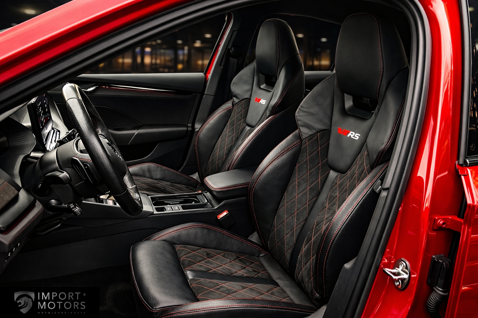 Matrix LED фары │ Проекционный дисплей (HUD) │ Виртуальная приборная панель │ Навигация Columbus │ SmartLink беспроводной (Apple CarPlay & Android Auto) │ Адаптивный круиз-контроль (до 210 км/ч) │ Lane Assist + ассистент движения в пробке │ Контроль слепых зон │ Front Assist с автоматическим торможением │ Парктроники спереди и сзади │ Камера помощи водителю │ 2-зонный климат-контроль │ Автономный подогрев с пультом │ Спортивные сиденья ErgoActive с электроприводом, памятью, подогревом и массажем │ Подсветка салона │ Keyless Advanced │ Беспроводная зарядка │ Легкосплавные диски 18” RS │ Спортивная подвеска RS │ Isofix │ ESP │ Start/Stop